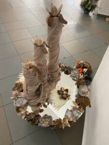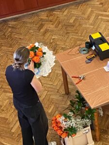 Úkolem bylo vytvořit kytici doplněnou o manžetu z materiálu, který původně sloužil k jinému účelu. Naši žáci použili papírové dortové podložky, mapy z atlasu světa nebo prostírání do jídelny, které po úpravě působily originálně a elegantně.