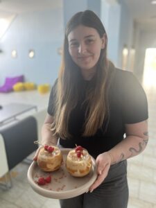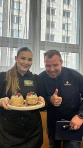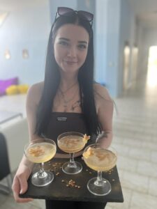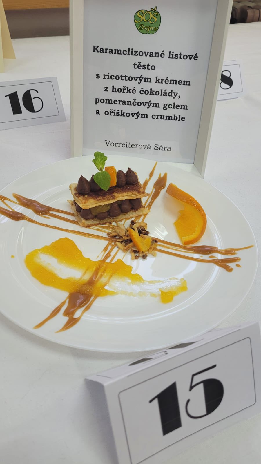 Druhý soutěžní den Gastro Cupu Kroměříž 2026 patřil našim šikovným žákyním, které opět ukázaly své dovednosti a kreativitu. Barbora Rožnovská zaujala svým míchaným drinkem Golden Butterfly, Klára Konvalinová představila ledový kávový koktejl Raspberry White Mocha Malibu a Sára Vorreiterová zazářila dezertem karamelizované listové těsto s ricottovým krémem z hořké čokolády, pomerančovým gelem a oříškovým crumble …Všem našim šikovným holkám moc děkujeme za skvělou reprezentaci školy a věříme, že vám soutěžní zkušenost přinesla spoustu inspirace, nových dovedností a cenných zážitků.
