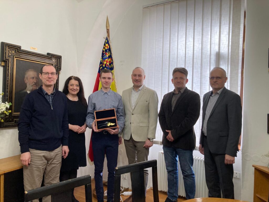 Dnešní den byl pro našeho Matěje Mikulicu, vítěze 21. ročníku Mistrovství ČR v řezu révy vinné – Memoriálu Jana Hajdy, opět výjimečný. Svou gratulaci a ocenění převzal také z rukou vedení města Znojma, které je na jeho úspěch právem velmi hrdé. Město si váží tradic vinařství, podporuje mladé talenty a oceňuje poctivou práci i odbornou přípravu žáků.