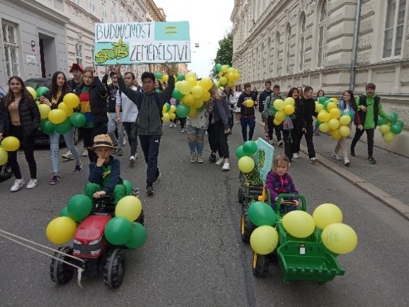 Naším letošním heslem na Majálesu bylo „Budoucnost=zemědělství“. Bez zemědělství se doposud žádný národ neobešel, je nezbytné pro přežití lidstva, a proto takové motto. Účastníky průvodu byli převážně třídy 1.OZ, 2.KC, ale také někteří žáci z 1.CP, 3.PK a prvního ročníku nástavbového studia.