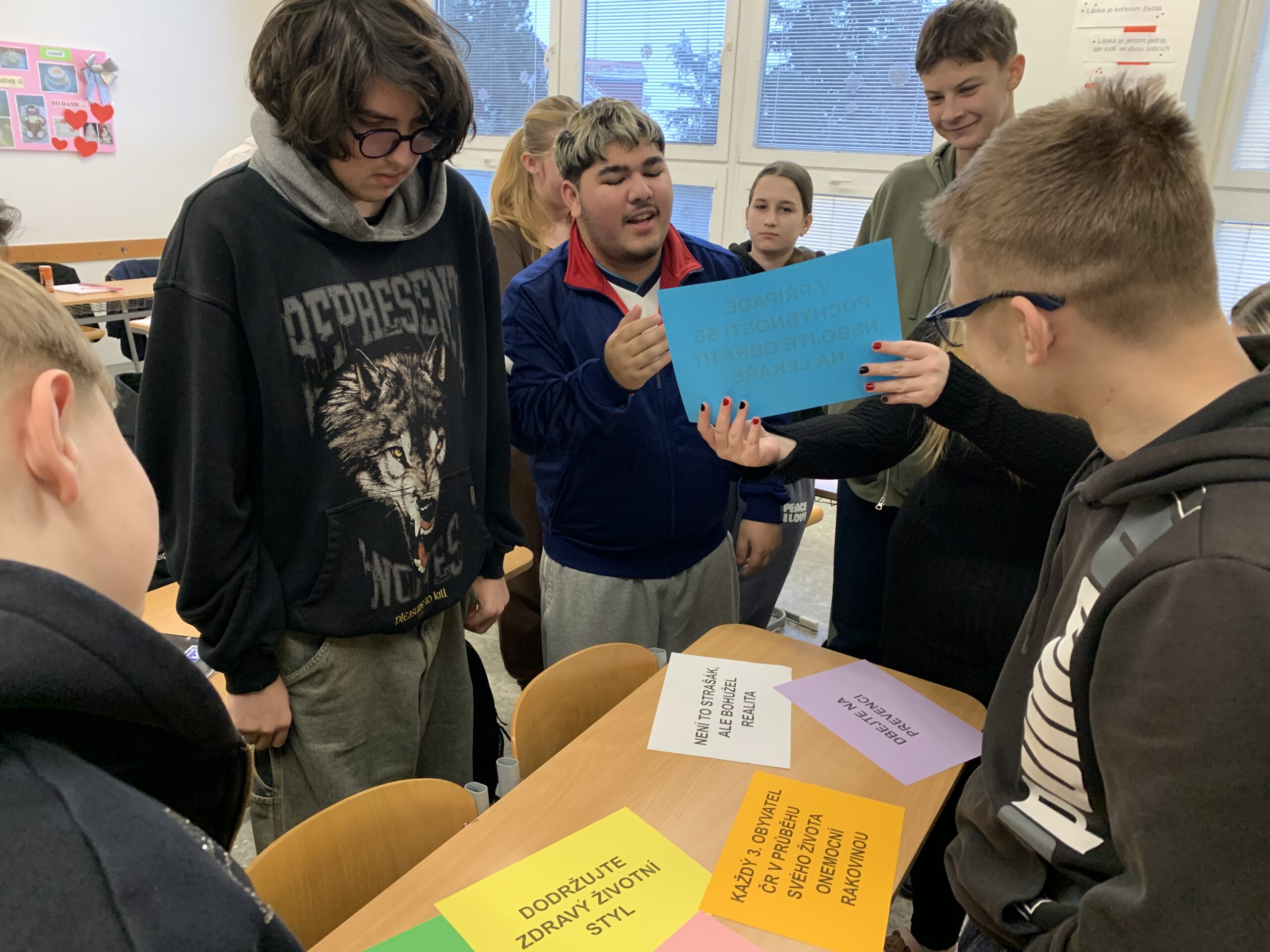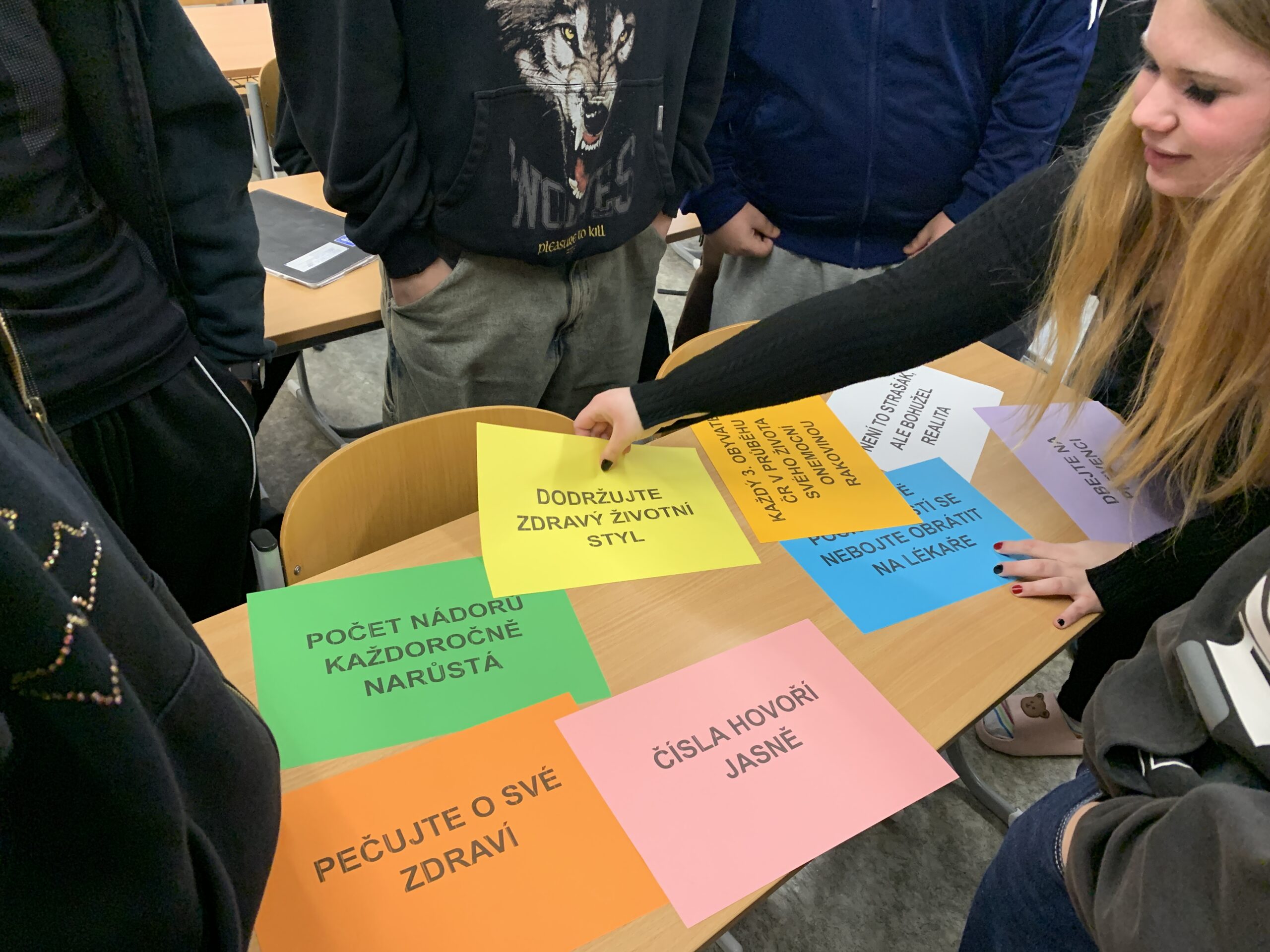 Žáci odpovídali: cigarety, drogy, alkohol poté následovala správná odpověď s vážným názvem RAKOVINA.