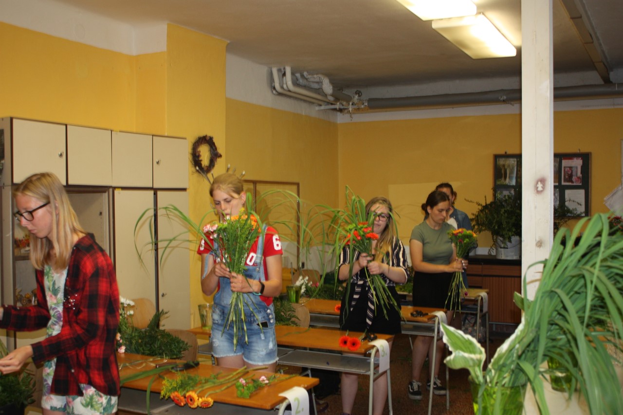Soutěžící z řad žáků základní školy a střední školy v průběhu dopoledne vytvořili působivé volně vázané kytice a vypichované misky. Mnozí ze žáků základní školy se s vazačskou a aranžérskou činností podle floristických zásad setkali poprvé, a proto ocenili rady a pomoc odborníků z řad pedagogů školy.