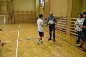 Ve 13.30 byl turnaj slavnostně ukončen. Ředitel školy Ing. Libor Pelaj spolu se zástupkyní ředitele Ing. Helenou Rokoskou předali vítězným týmům medaile, diplomy a poháry.