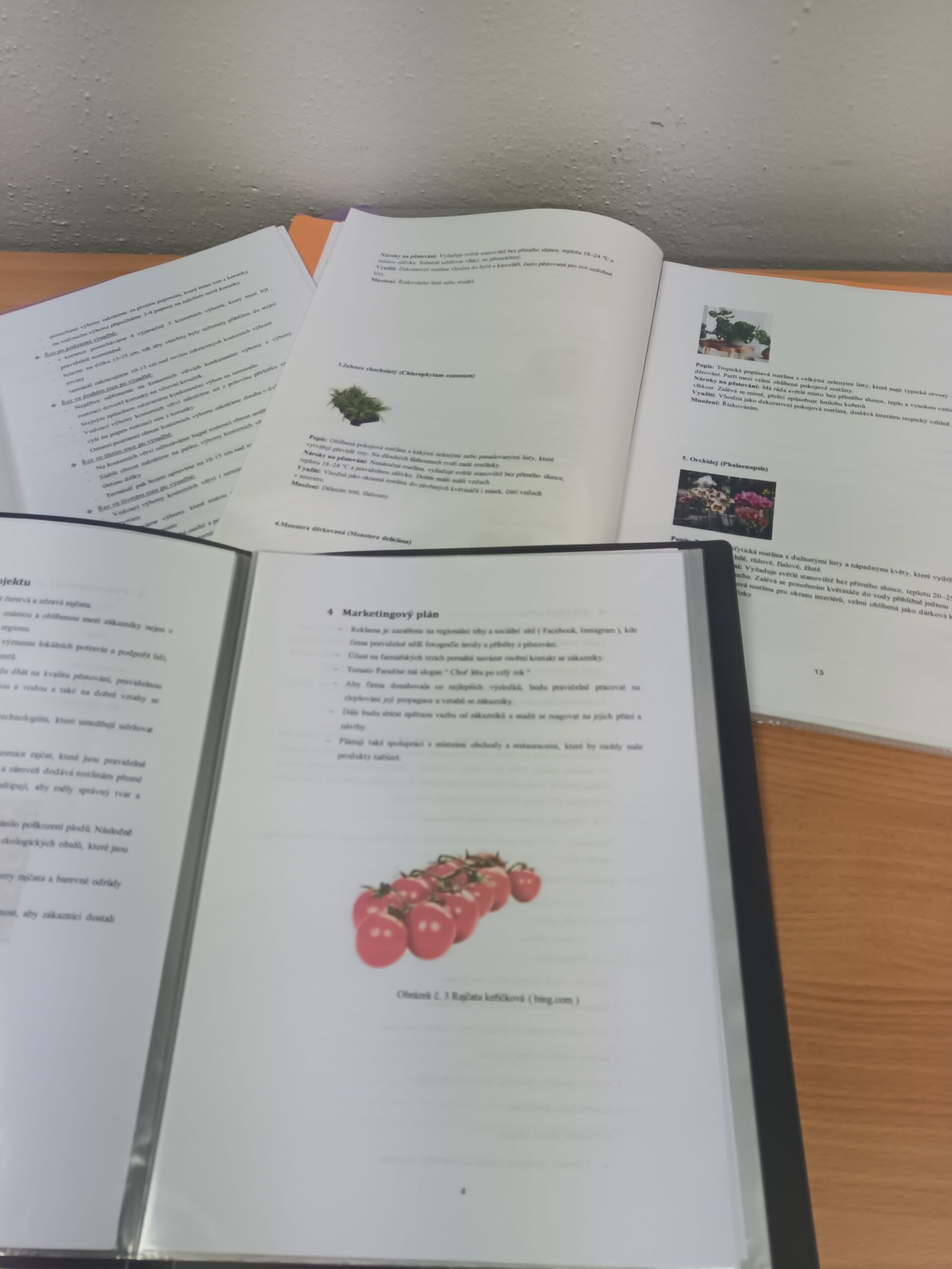 Mezi další zpracovaná témata patřila údržba zeleně u rodinného domu, pěstování bylinek a jejich prodej v květináčích či v sušeném stavu, dále firma zaměřená na pěstování rajčat od výsevu až po sklizeň s možností prodeje plodů jak k přímému konzumu, tak ke zpracování. Neméně zajímavé bylo téma zaměřené na rozmnožování ovocných stromů, školkování a prodej vypěstovaných stromků.