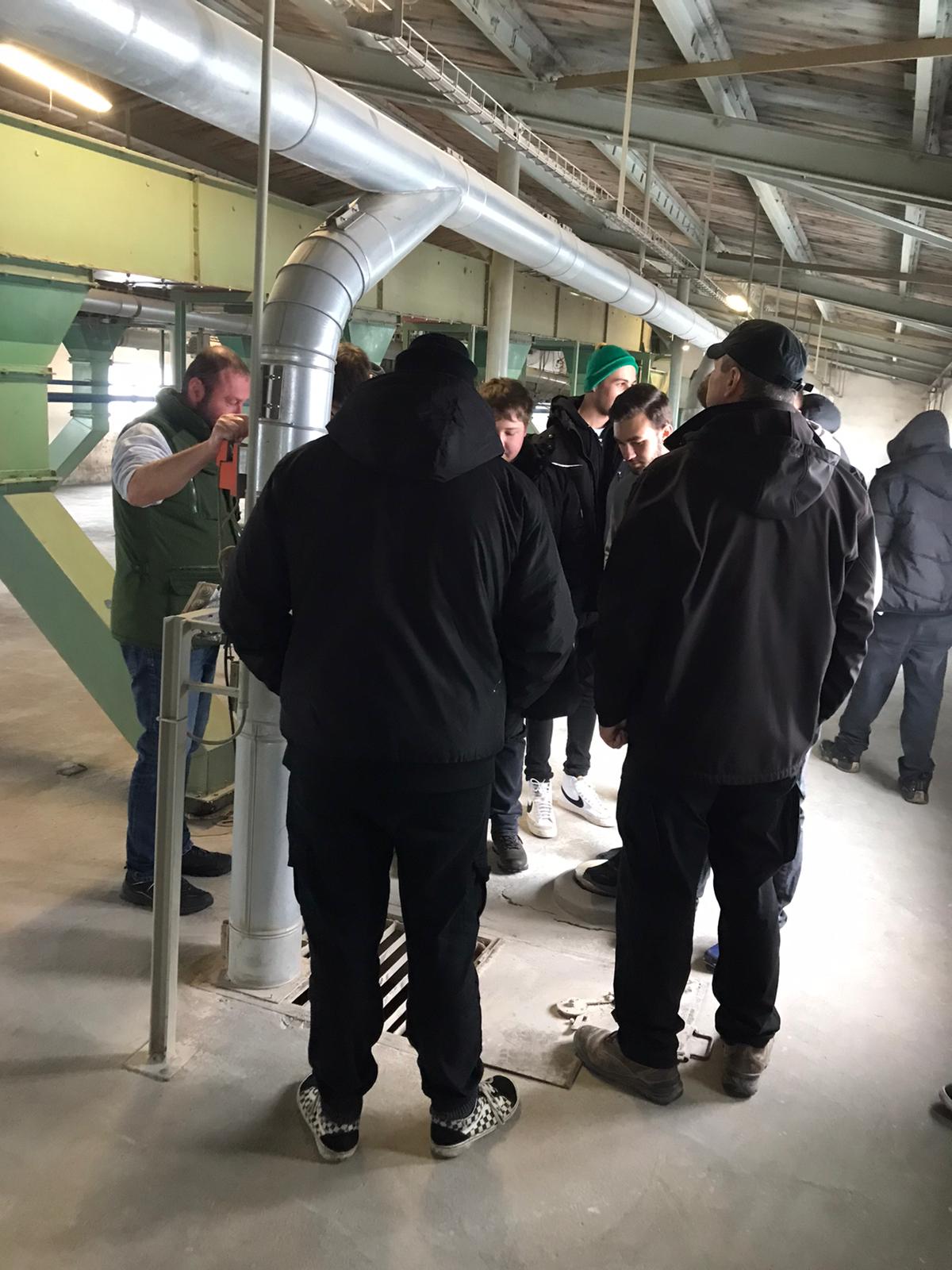 Nahlédli jsme do útrob obilného sila a vystoupali 201 schodů do výšky cca 60 metrů. Zajímavá byla také návštěva „velínu“, odkud je počítačem řízena práce s obilninami, jako jsou čistící a třídící procesy. Žáci viděli také mnoho různých dopravníků, které jsou nezbytnou součástí dopravních cest, které zajišťují provoz zpracování až po konečnou výrobu. Zajímavé bylo také strojové vybavení technologických linek. Součástí firmy je také výroba a prodej krmných směsí jak pro velkoodběratele i maloodběratele. Komponenty pro směsi do firmy přicházejí ze všech koutů světa. Jedná se především o vitamíny a minerální látky.