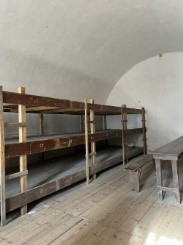 Prohlíželi jsme si společné pokoje, do kterých se vešlo hodně, hodně lidí. Spali tam na dřevěných postelích, na kterých měli matrace, ale ty se po určité době zničily, a tak museli spát pouze na dřevěných rámech.