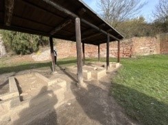 Vyšli jsme z Malé pevnosti a přišli jsme ke střelnici. Na zemi byly zhotoveny kříže, do kterých si lehali dozorci a stříleli z nich na zeď do vězňů. Ještě teď jsou tam vidět rýhy od nábojů. Zde bylo zabito 39 mužů a 3 ženy. Opodál stojí šibenice, kde byli pověšeni pro výstrahu 3 lidé, poté se už nepoužívala. Nyní tam stojí jen replika, protože se zeď kvůli povodním zbořila.