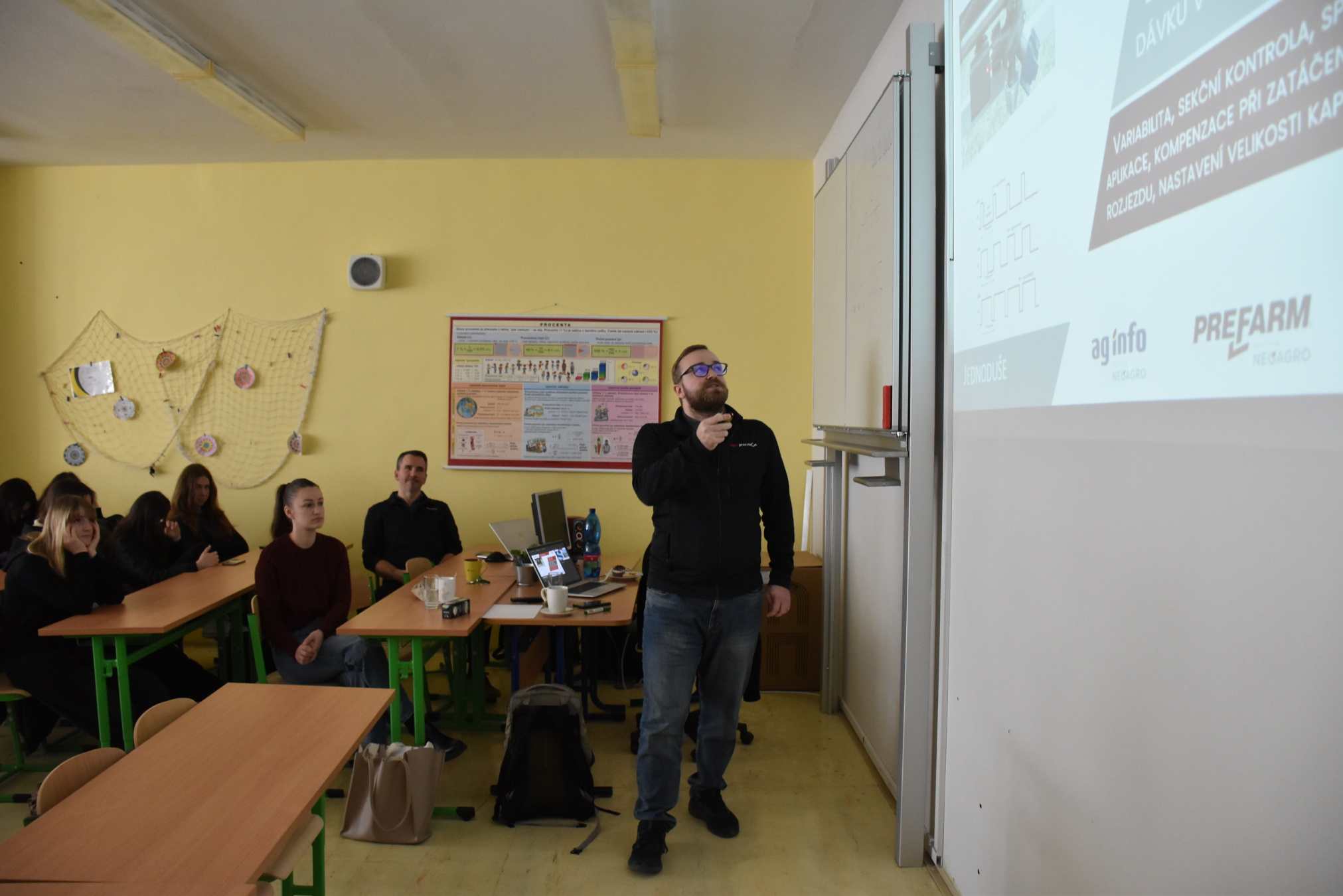 Třída 3.A se společně s žáky z Městské střední odborné školy z Klobouků u Brna zúčastnila odborné přednášky společnosti Agri-Precision. Přednášku vedli Ing. Šimon Šplíchal a Ing. Erik Jedon, kteří nám představili moderní navigační systémy pro zemědělskou techniku. Seznámili jsme se s principy jejich fungování, možnostmi využití v praxi i s přínosy pro precizní zemědělství … Dozvěděli jsme se také, jak navigace pomáhají zpřesnit setí, hnojení či postřiky a jak dokážou minimalizovat překryvy a ztráty. Součástí přednášky byly animace a krátká ukázková videa, díky kterým jsme si mohli lépe představit fungování jednotlivých systémů v reálném provozu.