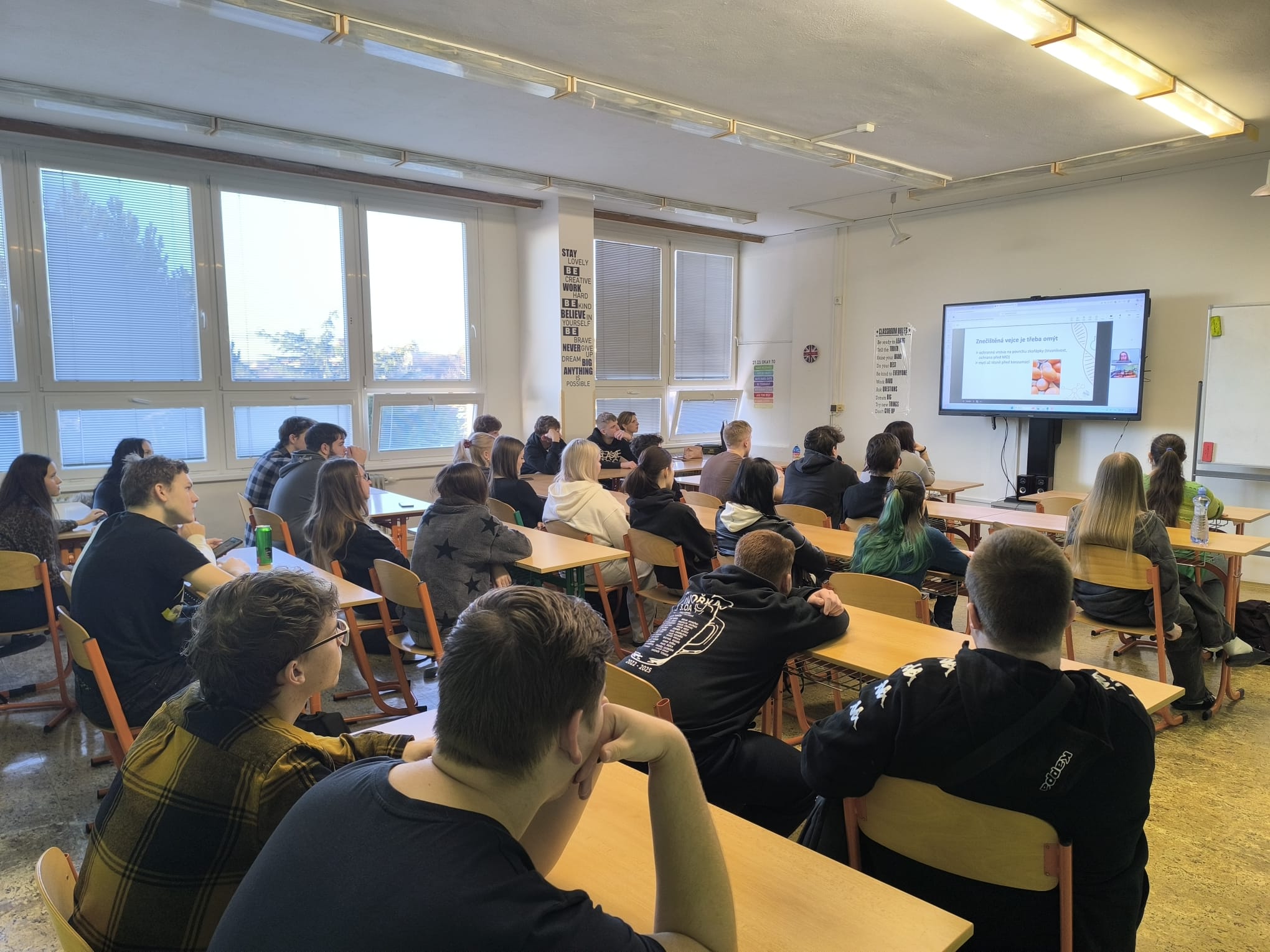 V pátek 12. prosince 2025 se pro žáky teoretického vyučování na SOŠ Znojmo, Dvořákova uskutečnil projektový den zaměřený nejen na zdravý životní styl. V tento den navštívilo naši školu 22 odborníků, kteří v rámci workshopů či přednášek žákům dané téma přiblížili. Pro každou třídu bylo připraveno pět setkání s odborníky … Během celého projektového dne se žáci dozvěděli spoustu cenných informací souvisejících nejen se záchranou lidského života, zdravým stravováním, prevencí v dopravě odbouráváním stresu, sebeobranou, protidrogovou prevencí, poruchami příjmu potravy a obsahem cukru v potravinách. Řadu dovedností, jako teakwondo, sebeobrana, první pomoc, odbourávání stresu, muzikoterapii, discgolf, jumping si účastníci aktivit vyzkoušeli v praxi. Novinkou v letošním roce byla online přednáška „Mýty o potravinách“ z fakulty Ústavu technologie potravin ve Zlíně, poutavá přednáška o cestování, a také workshop Národního parku Podyjí s tématem „K čemu je národní park“.