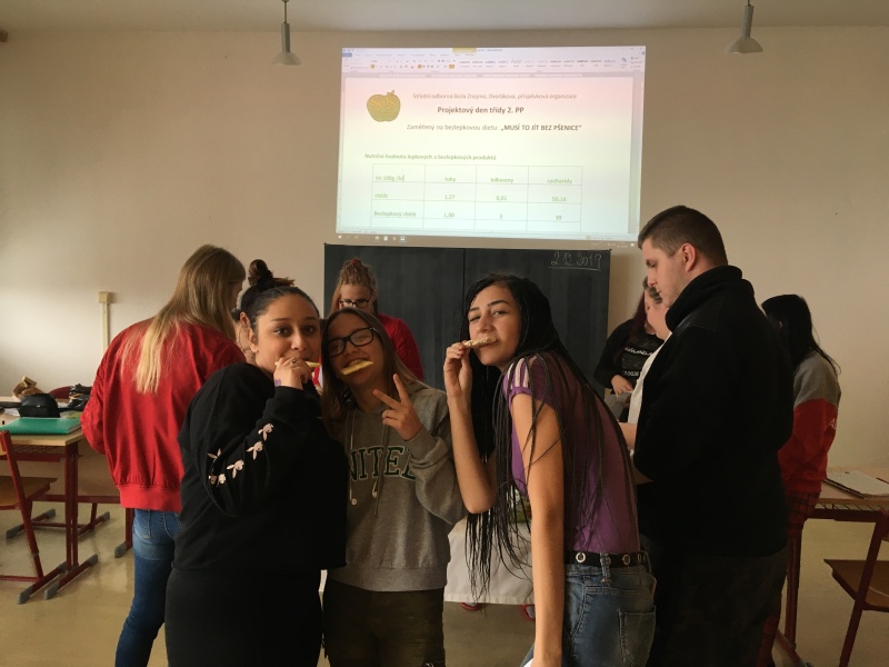 Třída 2. PP zahájila adventní vyučování 2. 12. 2019 projektovým dnem „Musí to jít bez pšenice!“ Žáci učebních oborů Prodavač a Pekař měli po celý den výuku zaměřenou na bezlepkovou výživu. Je to stále častější a vyskytované téma ve všech médiích spojované s diagnózou „celiakie“.