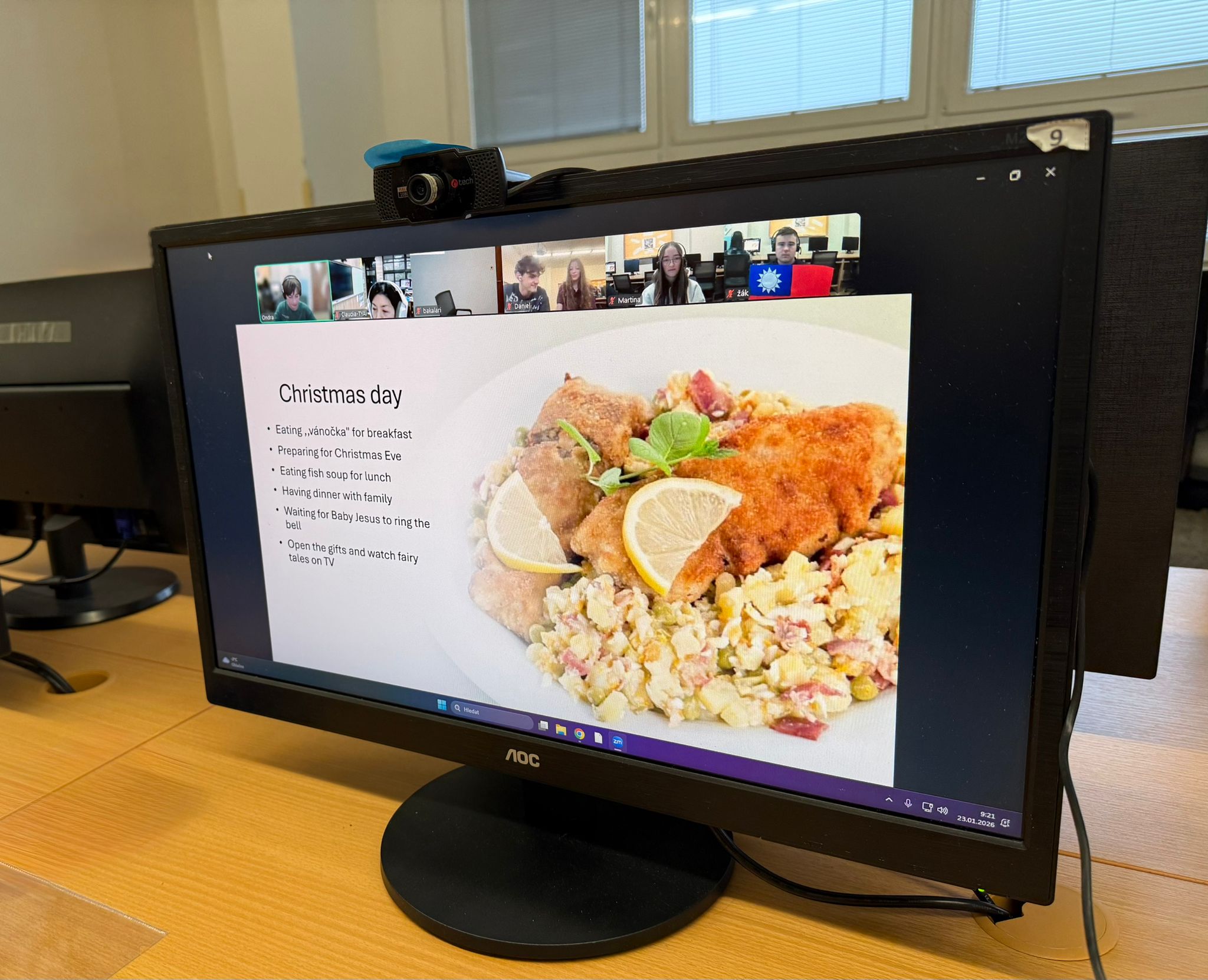 Naše dlouhodobá mezinárodní spolupráce se studenty univerzity z Tchaj-peje na Tchaj-wanu úspěšně pokračuje i v roce 2026. První letošní setkání proběhlo již v lednu, kdy se naše skupina studentů zaměřila na představení českých vánočních tradic a oslav příchodu nového roku. Studenti přiblížili typické zvyky, tradice i tradiční pokrmy, které jsou pro toto období u nás charakteristické.