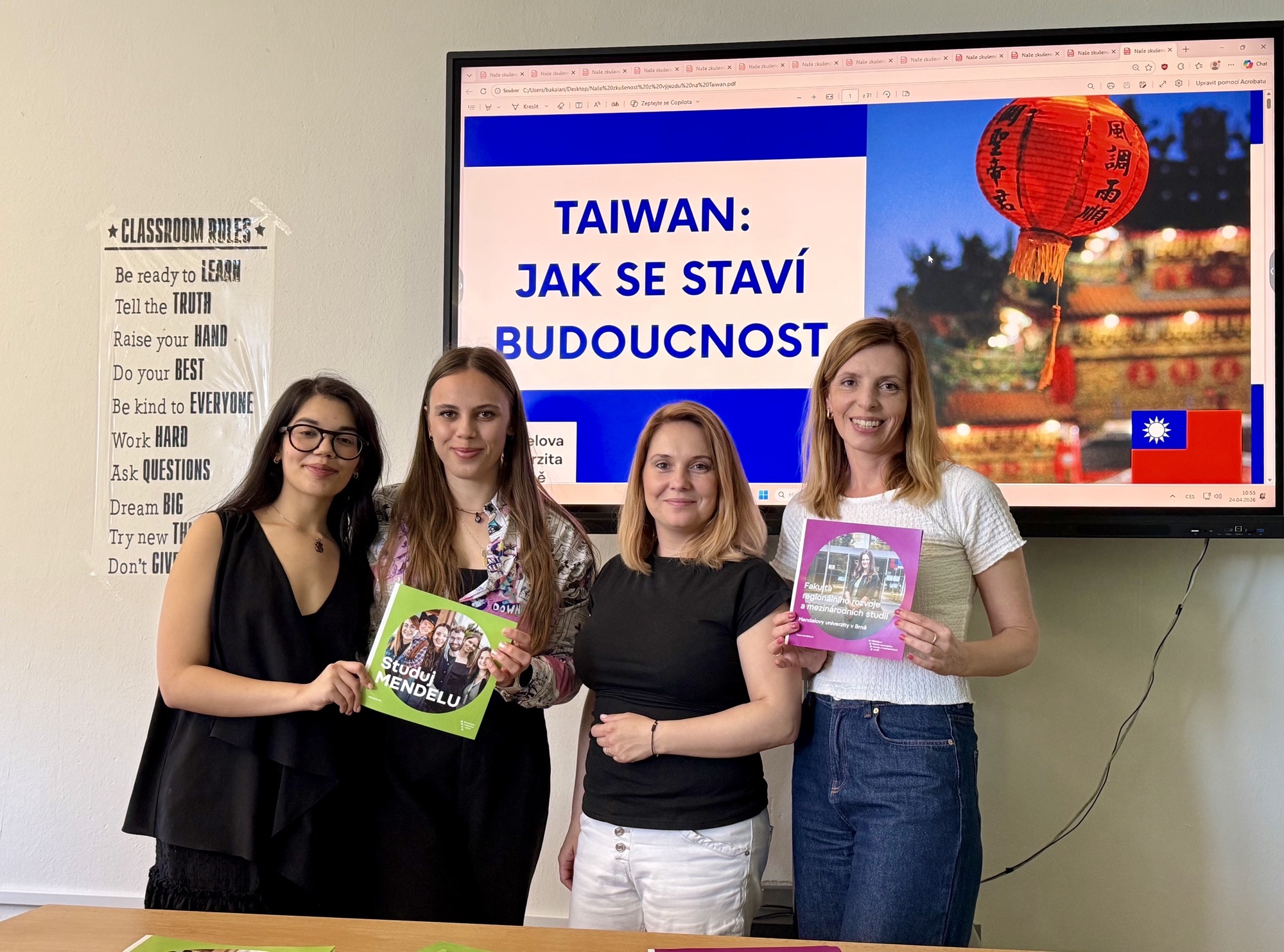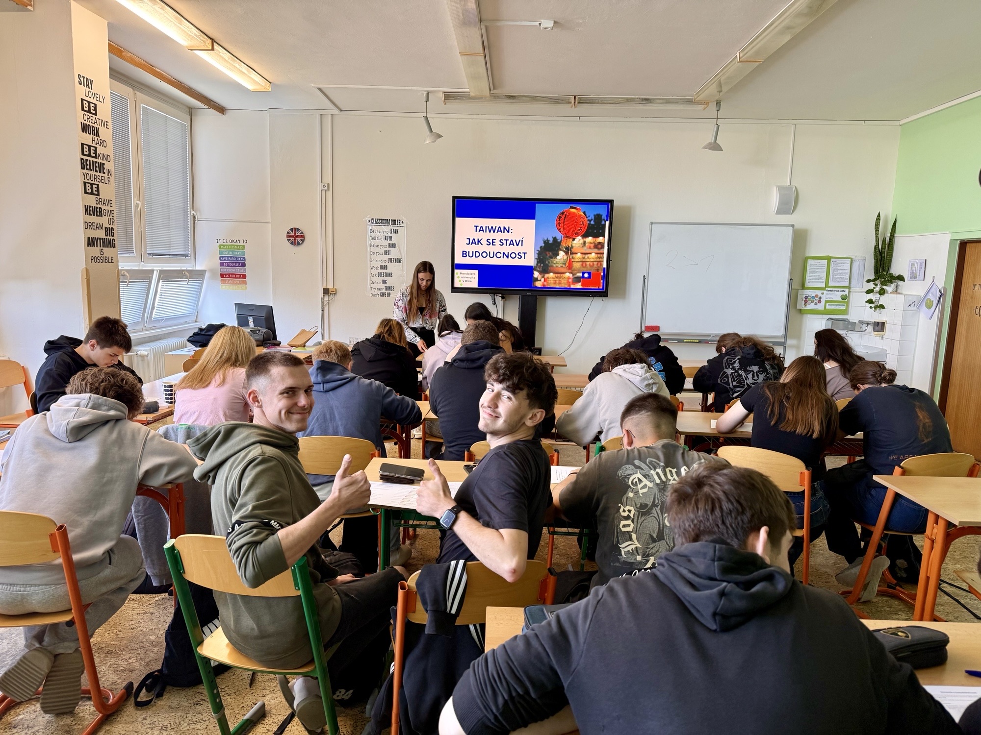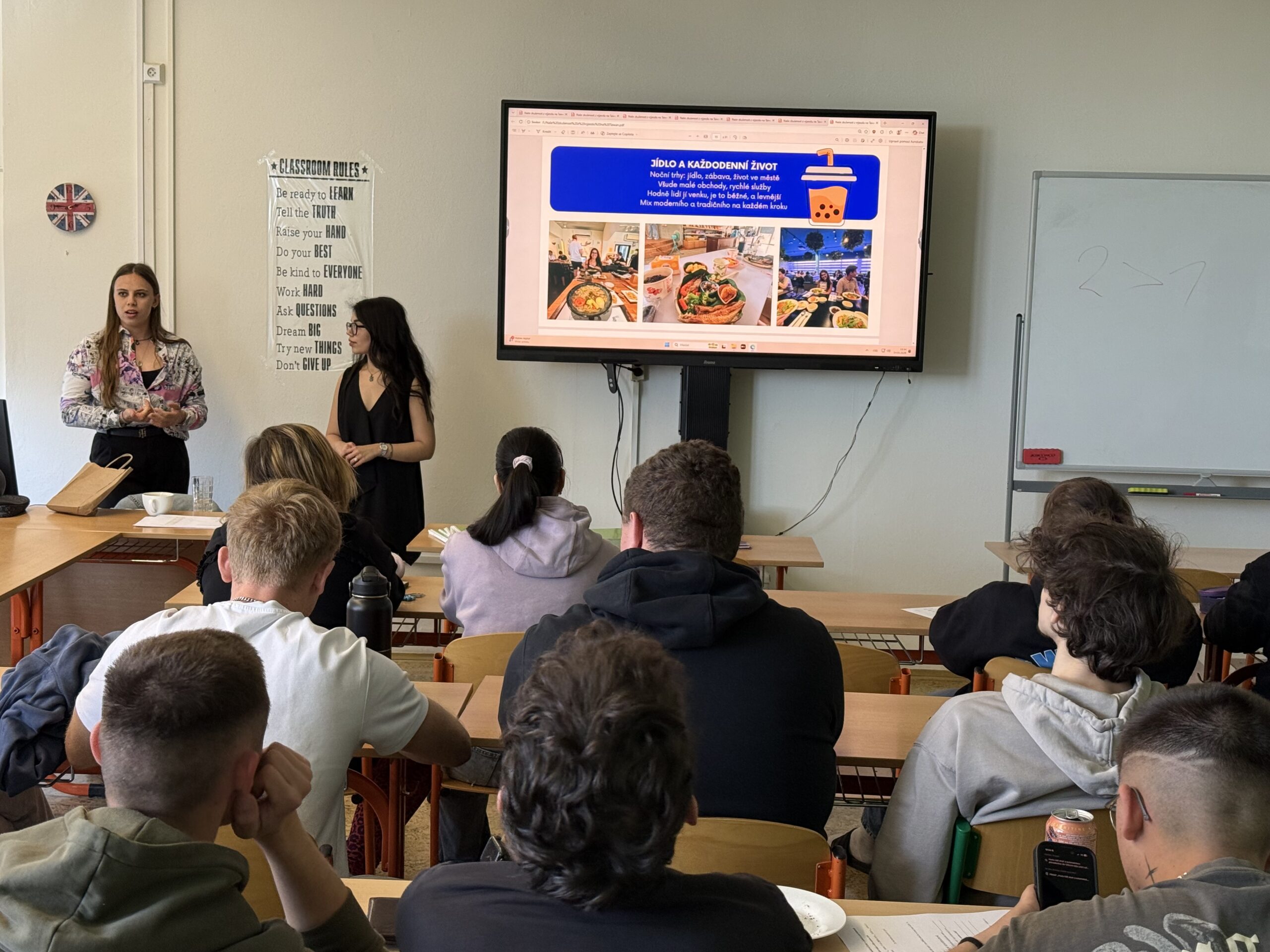 V pátek 25. dubna 2026 jsme na naší škole přivítali inspirativní návštěvu z Mendelovy univerzity v Brně. Studentky Klára Cupáková a Nicole Cosansel, které studují regionální rozvoj a mezinárodní studia, k nám zavítaly, aby se podělily o své zkušenosti z pětitýdenní stáže na Tchaj-wanu. Během poutavé přednášky nás provedly touto fascinující zemí od základních geografických informací až po každodenní život jejích obyvatel …